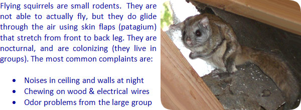 The most important thing to remember with flying squirrels is prevention goes a long way. It is much easier to prevent them from getting inside than dealing with them once they are inside.